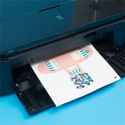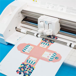 Once you have your printed image, you can simply take the printed material and feed it into the Silhouette. The Silhouette's built-in optic scanner will find the registration marks on your printed material and take care of the rest!