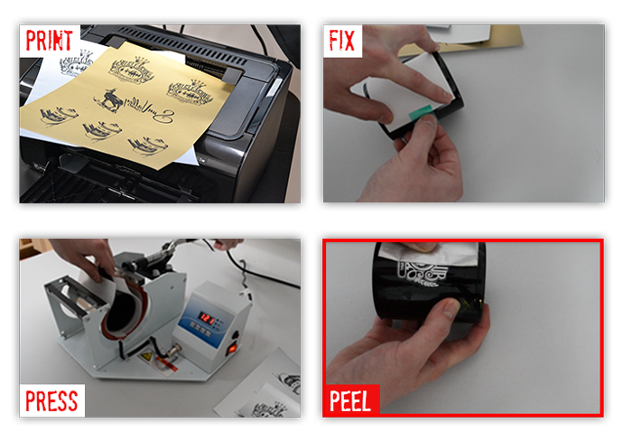 With the new FOREVER Multi-Trans Metallic Gold and Silver, you can now bring a little style and luxury to Mug printing Print Black and Get Metallic Colors! 1-Step Paper-System for Printing Metallic colors onto White, Black & Colored Mugs as well as many other surfaces.