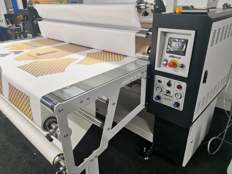 • Effective, advanced and economical heating system. • Industrial heating system with thermal oil & Level indicator. • Cylinder rotation speed controller. • Digital temperature controller. • Option to change the rotation in the cylinder movement. • Four tension rollers for the blanket. • Worktable for item-to-item applications. • Automatic rollers to collect used material. • Designed for continuous roll sublimation and item sublimation. • Blanket protection alarm through limit sensors. ** It is the most profitable option to enter the sublimation market. |
