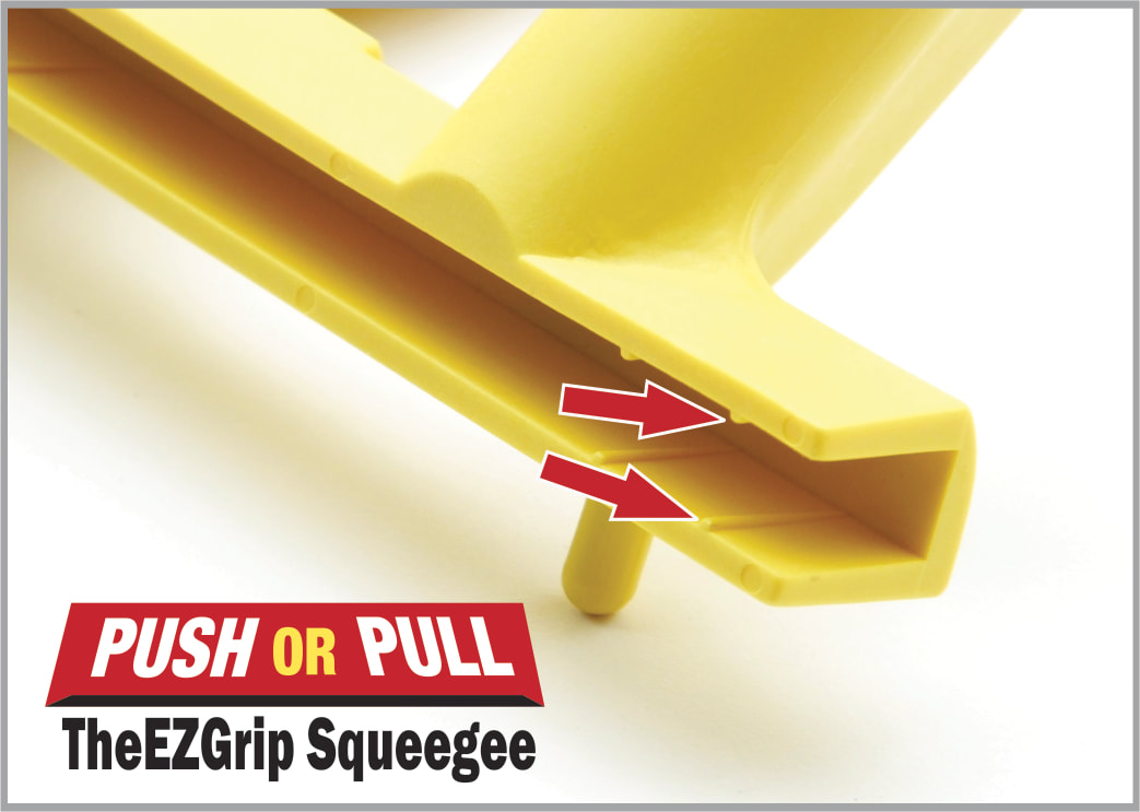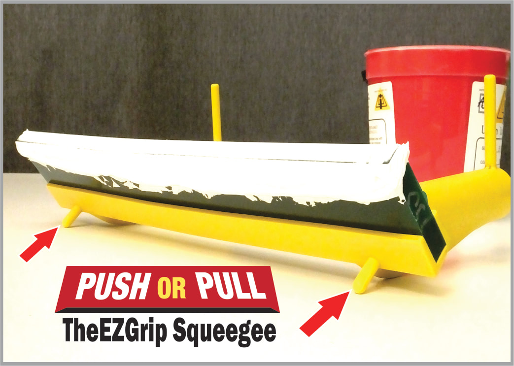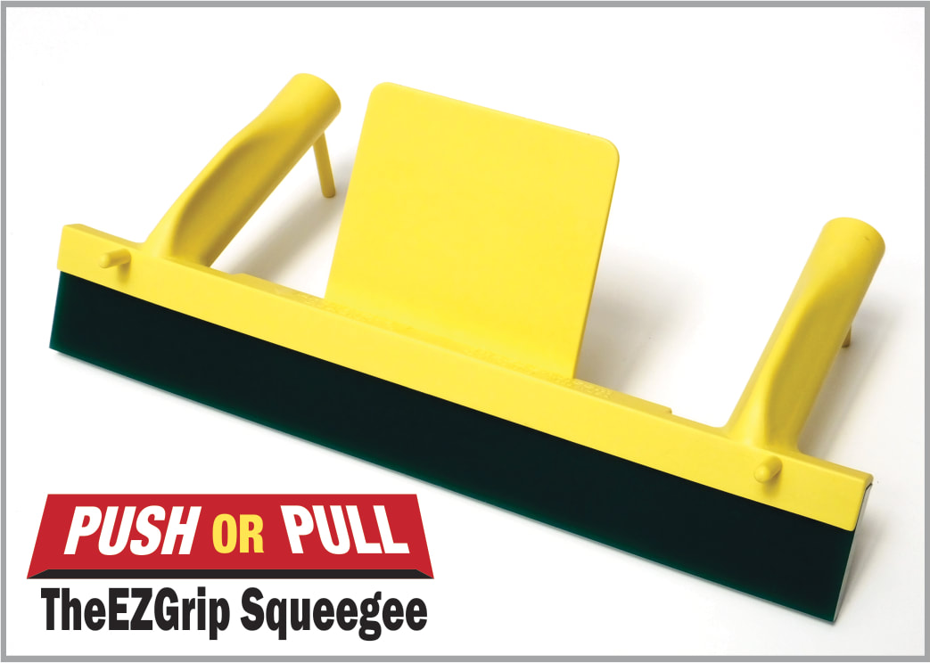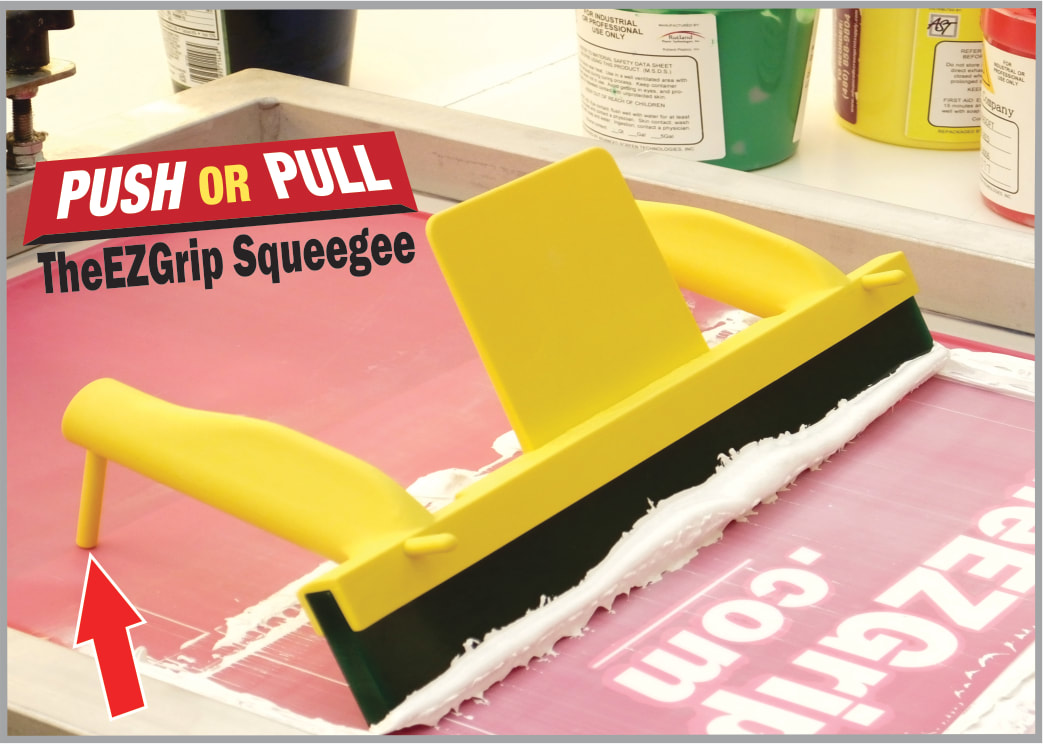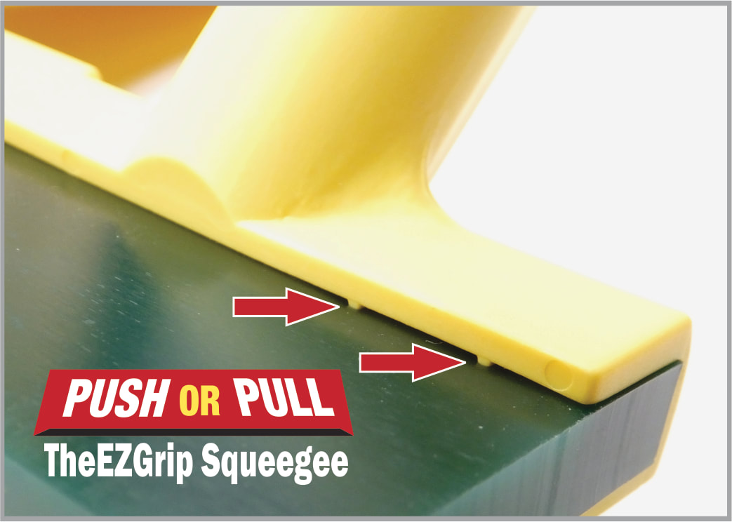 The ergonomic "Dual Grip Handle Design" provides a comfortable grip, which aligns the hands and adjoining wrists to promote a healthy posture that reduces stress. Our exclusive "Ink Protection System", features built-in braces that support the squeegee to prevent time consuming ink messes and clean up, on or off the screen. Support rods located at the end of each handle keep the grips away from the ink.