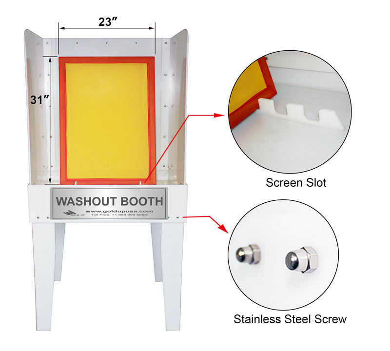 Flash Cure Unit: 18"x18", with Stand & Casters - Voltage: 110v Compact Conveyor Dryer: CD6020 20" wide x 5'ft LONG - Voltage: 110v Exposure Unit: UV Manual On/Off - Max Screen size: 20"x24" OD Washout Booth: Plastic 24" wide Supply Package SK-1001 Production: 95 pcs /hr |