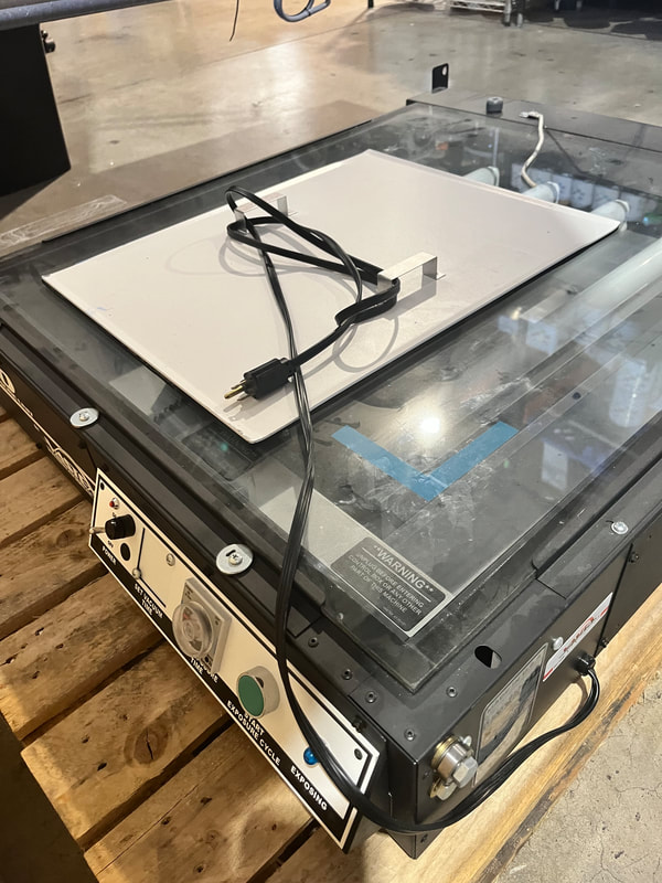 Model: LOGOS Compact 20x24 Description: Logos 20x24 Max Screen size - On/OFF manual - No Vacuum Max Frame Size: 20 x 24" OD Exposure Unit Equipped with: UV Flou Lamps 25watts - Exposure timer - 110volts Condition: USED - Year of mfg: 2018 Price: $250.00